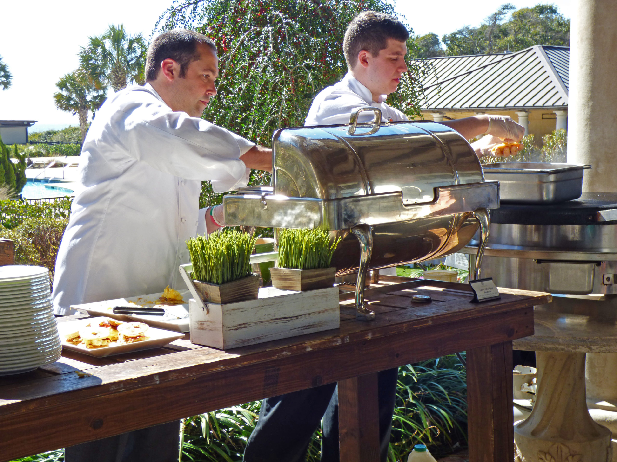 Because this was the farewell brunch for Gourmet and Grapes weekenders, all of Kiawah’s executive chefs were on hand interacting with guests. You won’t find a more engaging team of culinary professionals. They all seem to have both an authentic passion for their art and a fondness for their workmates. That’s a lot of talent employed at Kiawah Island Resort. The Resort provides guest many dining options with 11 restaurants. Dining choices include prime beef, sushi, fresh seafood, authentic Italian, poolside burgers, and southern BBQ.