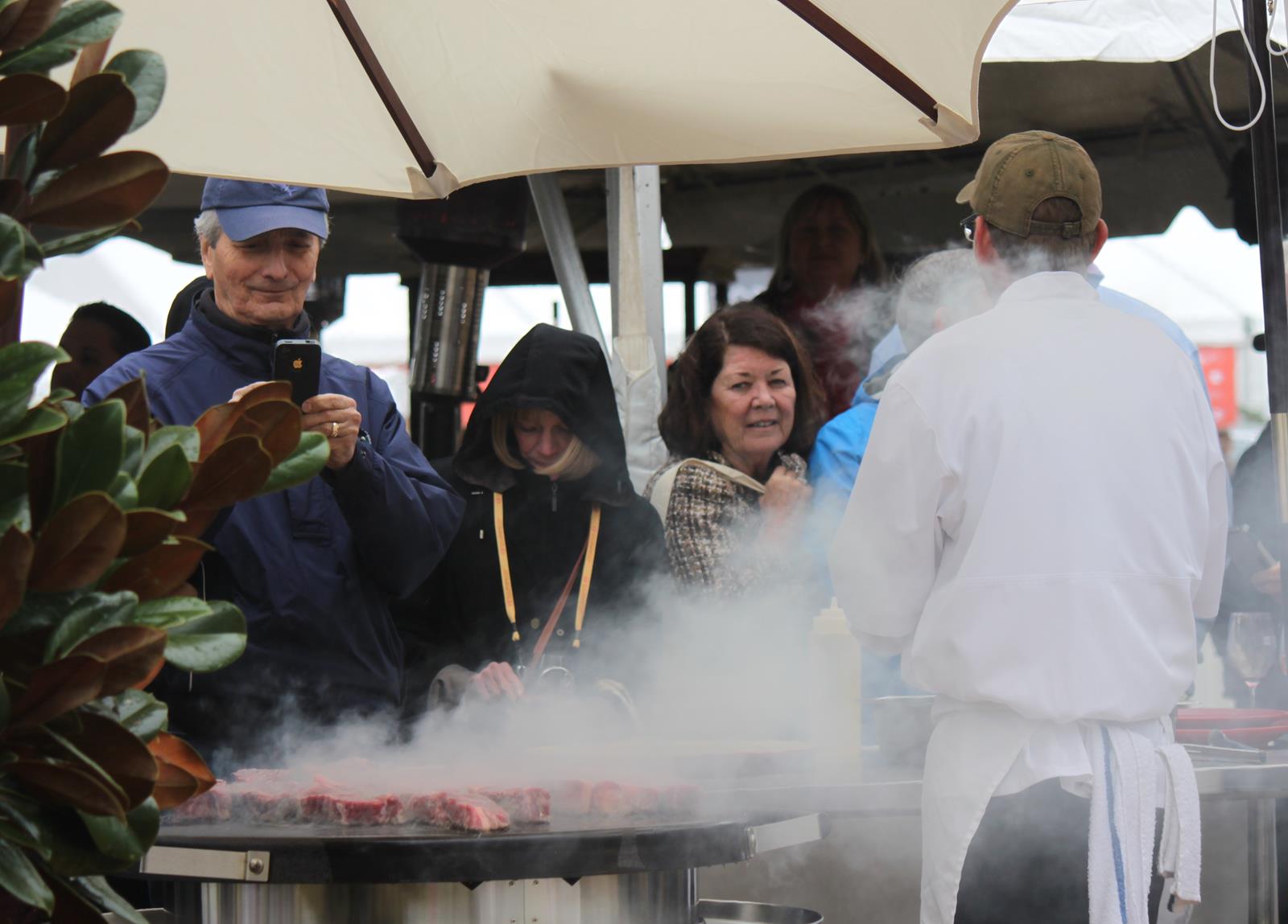 - Resilient festival goers gather in the rain for Chef Matthew Niesser’s Hall’s Chophouse demo.
