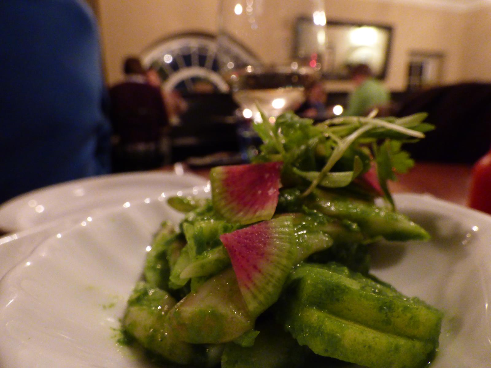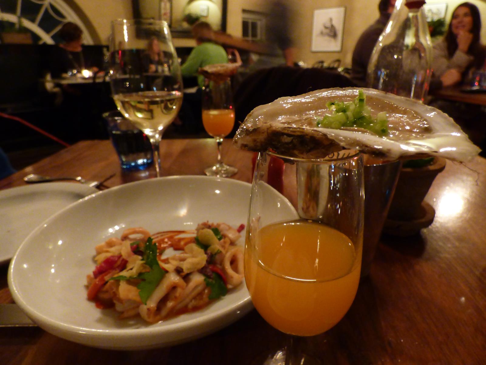 It sounded odd and was hard to imagine, but boy am I glad I listened to her. We were won over in one amazing bite. Of all the dishes in this post this is the one I never knew I loved but I am so happy I found. Inspired and unique yet oddly familiar. Crispy but with a creamy umami from the beef tartare. This is this dish that will impress any out of town “foodie” looking for a local thrill.Don’t be afraid – order it. There is a story about the origins of this dish being a mix up somewhere in Europe with Chef Lata trying to get some tartar sauce with his fried oysters and getting Beef tartare instead. Good story- might even be true. Even though we were focusing on oysters, Brittany tipped us off about ordering the razor clams with apple ,cilantro and watermelon radish. So fresh and perfectly balanced. This is one of their original dishes and you see why it has stayed on the menu. Almost reminded me of a Vietnamese flavor profile.