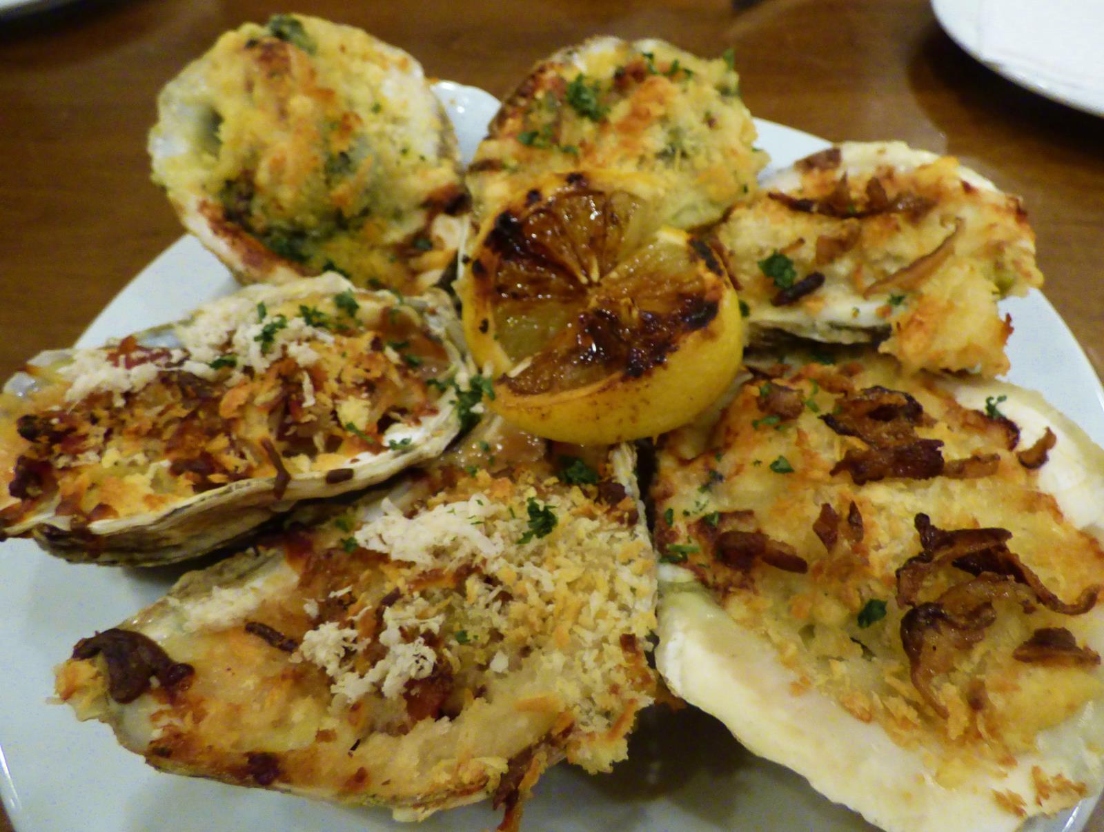 - From top pictured are Rockerfeller, Bienville, and BBQ Baked Oysters-all good.