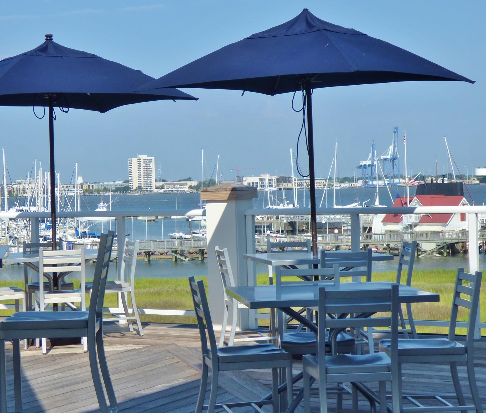- Diners inside or out are all offered perfect water views of the Charleston harbor and Yorktown