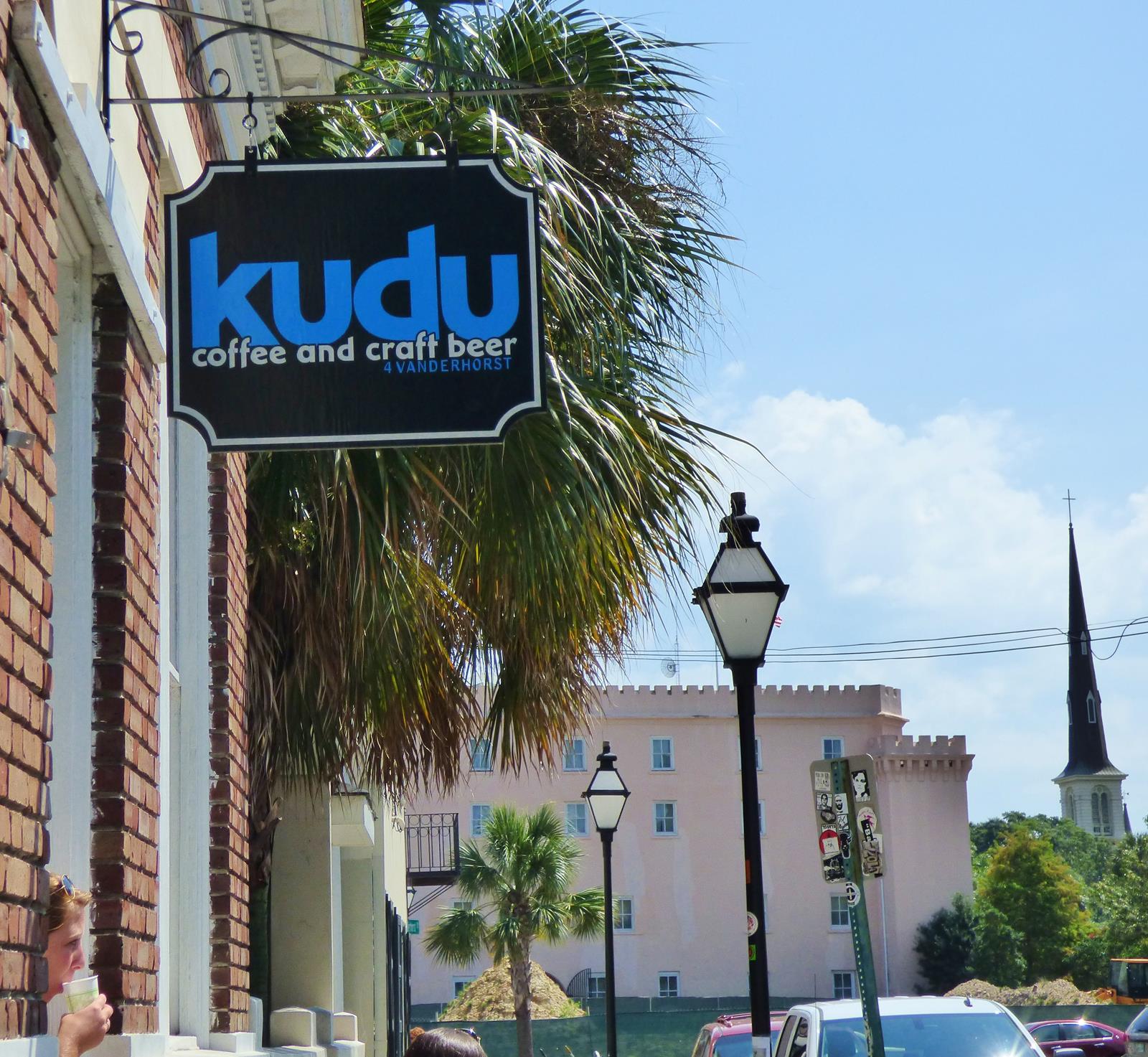 We are a bit tired and need a little sit down time. We headed up King St and over one Block to Vanderhorst St for a seat with a courtyard view at Kudu. Kudu is a wonderful and unique coffee bar in several ways.