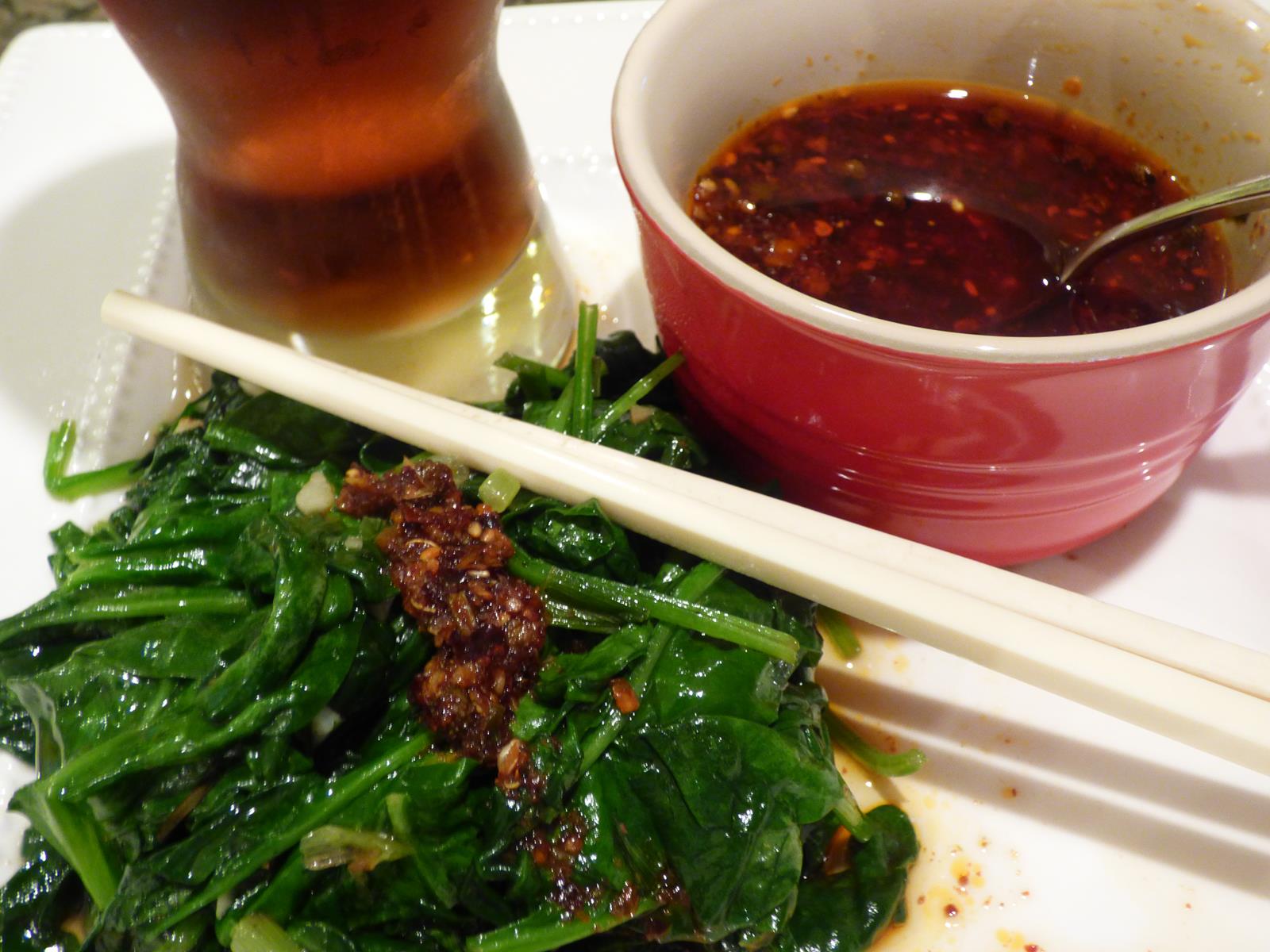 - Garlic spinach hits a new level of cravable with the addition of sichuan chili oil!