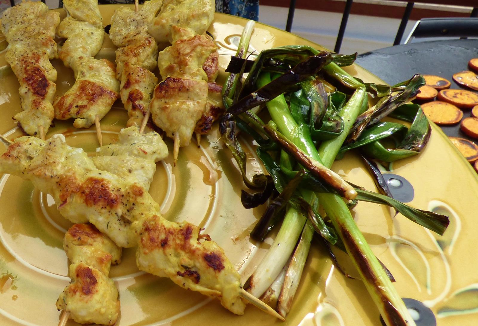 Grilled vegetables go great with kabobs. Here I’ve made sweet potatoes, spring onions, and zucchini on my EVO flat top grill. Always use whatever is fresh, in season, or your family’s favorite. Plum tomatoes, spicy peppers, sweet onions, and asparagus are also all regulars on our grill. I stagger what I cook on the EVO grill, so that it is all finished at the same time, and that way I can turn off the grill and relax with my family or guests. Sometimes I simply turn the EVO grill off and then serve directly from the warm flat top buffet style. For a traditional grated grill I recommend removing your items to a warm platter as things are ready. For more information about EVO Grills or purchasing your own EVO (click here).
